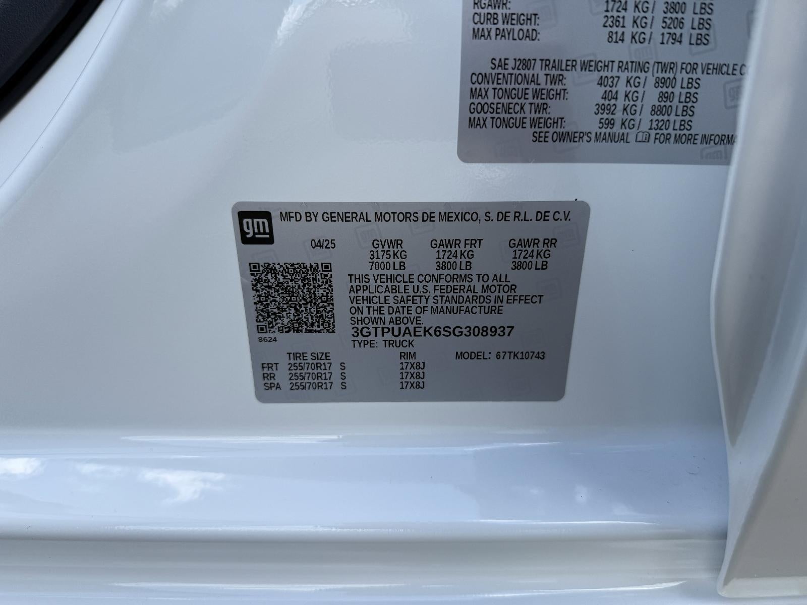 TRAILERING PACKAGE includes trailer hitch, 7-pin and 4-pin connectors and (CTT) Hitch Guidance, PRO VALUE PACKAGE includes (PCI) Convenience Package and (Z82) Trailering Package, CONVENIENCE PACKAGE includes (QT5) EZ Lift power lock and release tailgate, (AKO) tinted glass, (UF2) LED cargo bed lighting, (C49) rear-window defogger and (DLF) outside power mirrors., 1SA SAFETY PLUS PACKAGE includes (UD5) Front and Rear Park Assist, (UKC) Lane Change Alert with Side Blind Zone Alert, (UFB) Rear Cross Traffic Braking, (U12) Perimeter lighting and (DP9) outside chrome mirror caps Includes (V76) recovery hooks on 2WD models. , TRANSMISSION, 8-SPEED AUTOMATIC, (COLUMN SHIFTER) ELECTRONICALLY CONTROLLED with overdrive and tow/haul mode. Includes Cruise Grade Braking and Powertrain Grade Braking (STD), TRAILER BRAKE CONTROLLER, INTEGRATED, TIRES, 255/70R17 ALL-SEASON, BLACKWALL (STD), TIRE, SPARE 255/70R17 ALL-SEASON, BLACKWALL (STD), TAILGATE, GMC MULTIPRO TAILGATE with six functional load/access features (Includes (QT5) EZ Lift power lock and release tailgate., TAILGATE, GATE FUNCTION MANUAL WITH EZ LIFT includes power lock and release, includes hitch area light.