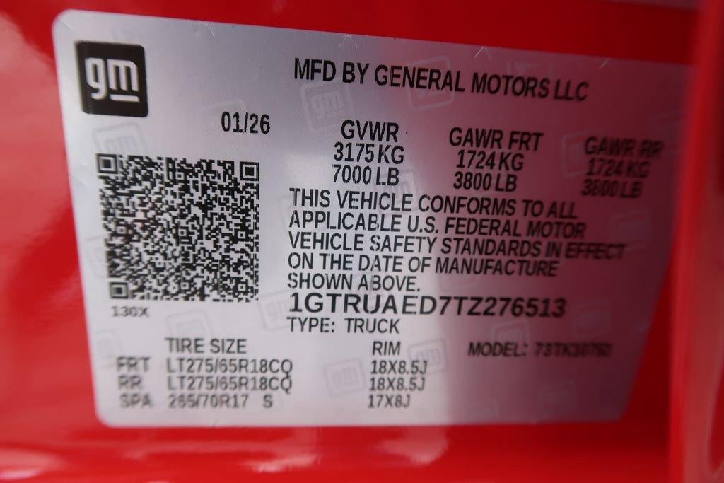 TRAILERING PACKAGE includes trailer hitch, 7-pin and 4-pin connectors and (CTT) Hitch Guidance, PRO VALUE PACKAGE includes (PCI) Convenience Package and (Z82) Trailering Package, CONVENIENCE PACKAGE includes (QT5) EZ Lift power lock and release tailgate, (AKO) tinted glass, (UF2) LED cargo bed lighting, (C49) rear-window defogger and (DLF) outside power mirrors., 1SA SAFETY PLUS PACKAGE includes (UD5) Front and Rear Park Assist, (UKC) Lane Change Alert with Side Blind Zone Alert, (UFB) Rear Cross Traffic Braking, (U12) Perimeter lighting and (DP9) outside chrome mirror caps Includes (V76) recovery hooks on 2WD models. , TRANSMISSION, 10-SPEED AUTOMATIC, (COLUMN SHIFTER) ELECTRONICALLY CONTROLLED with overdrive and tow/haul mode. Includes Cruise Grade Braking and Powertrain Grade Braking, TRANSFER CASE, TWO-SPEED, ELECTRONIC AUTOTRAC with push button control, TRAILER BRAKE CONTROLLER, INTEGRATED, TIRES, LT275/65R18C BLACKWALL GOODYEAR WRANGLER TERRITORY MT, TIRE, SPARE 265/70R17SL ALL-SEASON, BLACKWALL, TAILGATE, GATE FUNCTION MANUAL WITH EZ LIFT includes power lock and release, includes hitch area light.